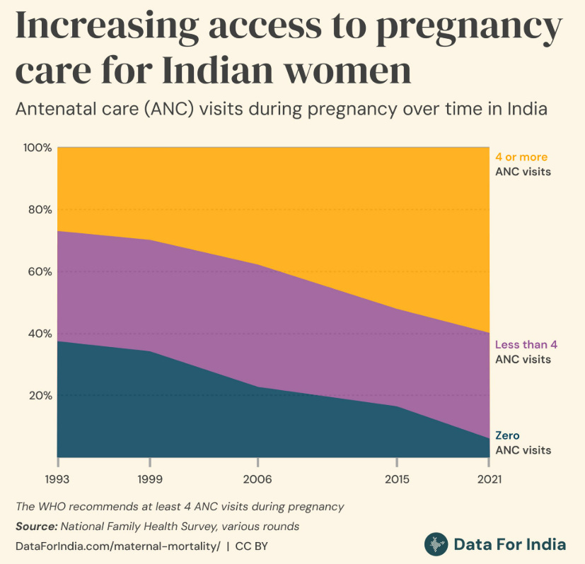 In 1998, India's Maternal Mortality Rate (MMR) stood at 398 deaths per 100k live births. By 2020, the rate reduced to 97 maternal deaths per 100k live births