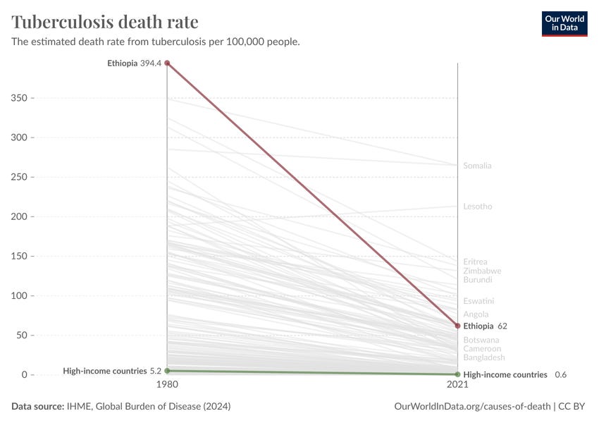 Ethiopia has achieved a sixfold reduction in the death rate for TB since 1980