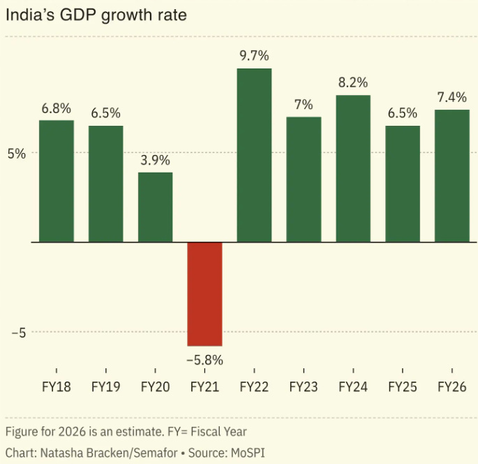 India’s economy is projected to grow at 7.4% in 2026, 0.9% higher than last year